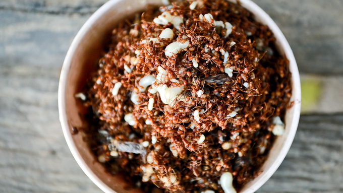 Món cà sóc kiến vàng là một món ăn dân dã, lạ miệng nhưng vô cùng thơm ngon, bổ dưỡng của đồng bào người Gia Lai.