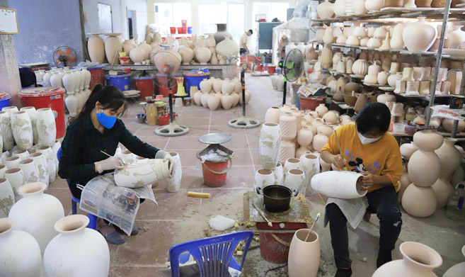 Sản xuất đồ gồm mỹ nghệ tại làng nghề Bát Tràng (huyện Gia Lâm). Ảnh: Quang Thái