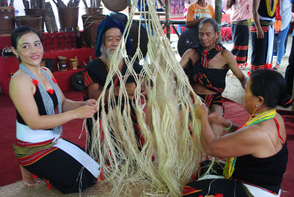 Độc đáo nghề đan võng từ cây sari của người Cadong