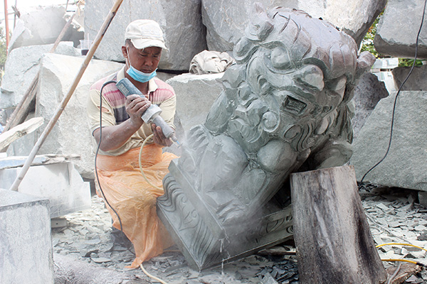 Để có những sản phẩm đá mỹ nghệ, đòi hỏi các nghệ nhân phải trải qua nhiều công đoạn rất vất vả, thường xuyên tiếp xúc với bụi đá