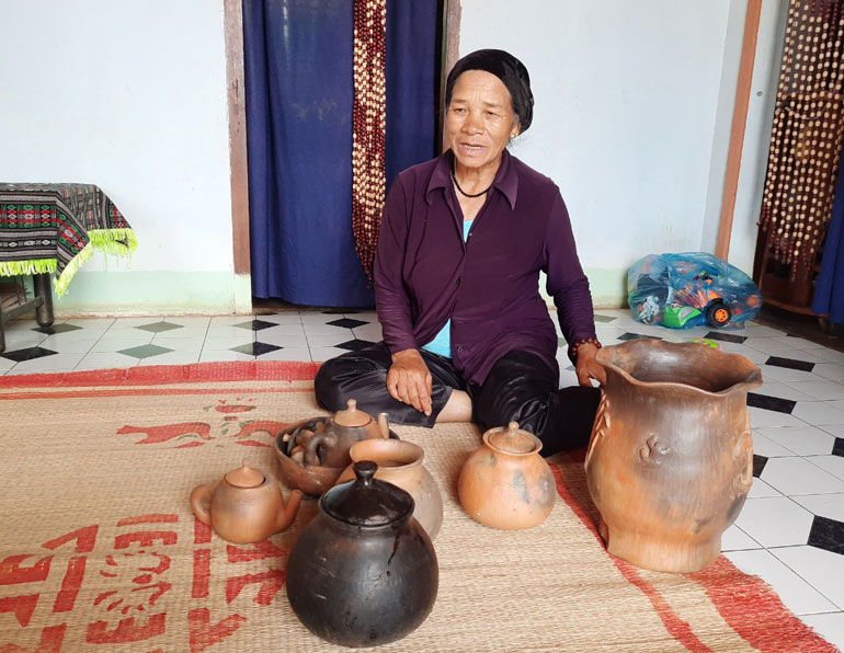 Nghệ nhân Ma Li giới thiệu các sản phẩm gốm mộc Chu Ru.