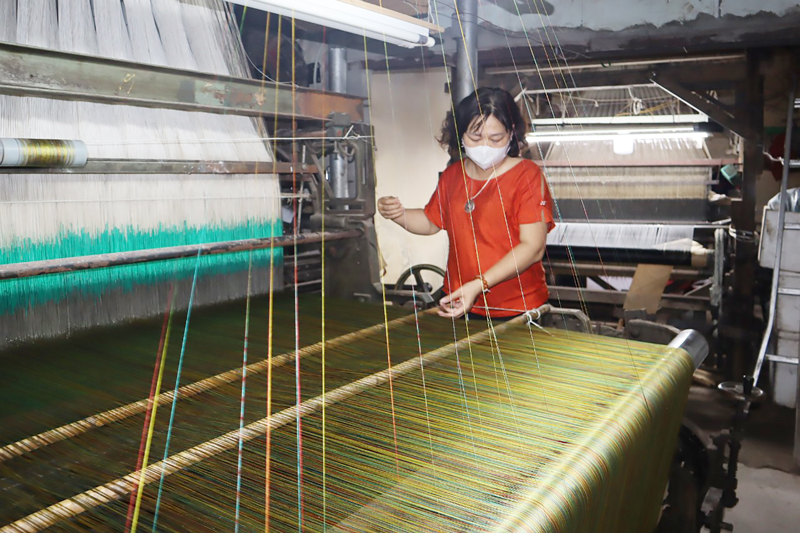 Xưởng dệt lụa của gia đình nghệ nhân Trần Thị Ngọc Lan, phường Vạn Phúc.