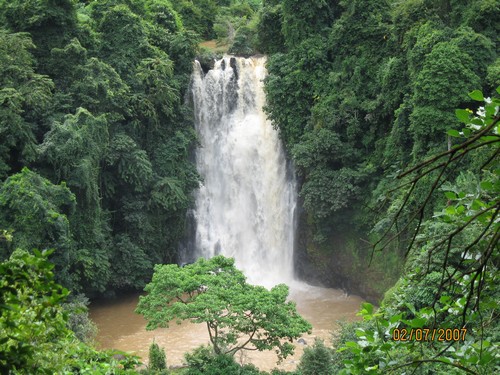 Nằm cách không xa quốc lộ 20, nên ngay từ xa đã có thể nghe tiếng thác vọng cả núi rừng. Ấn tượng đầu tiên khiến du khách phải ngỡ ngàng là dòng thác cao 50 m như một dải lụa trắng tinh đổ sầm sập xuống lòng hồ, tung bọt trắng xoá.<!—->