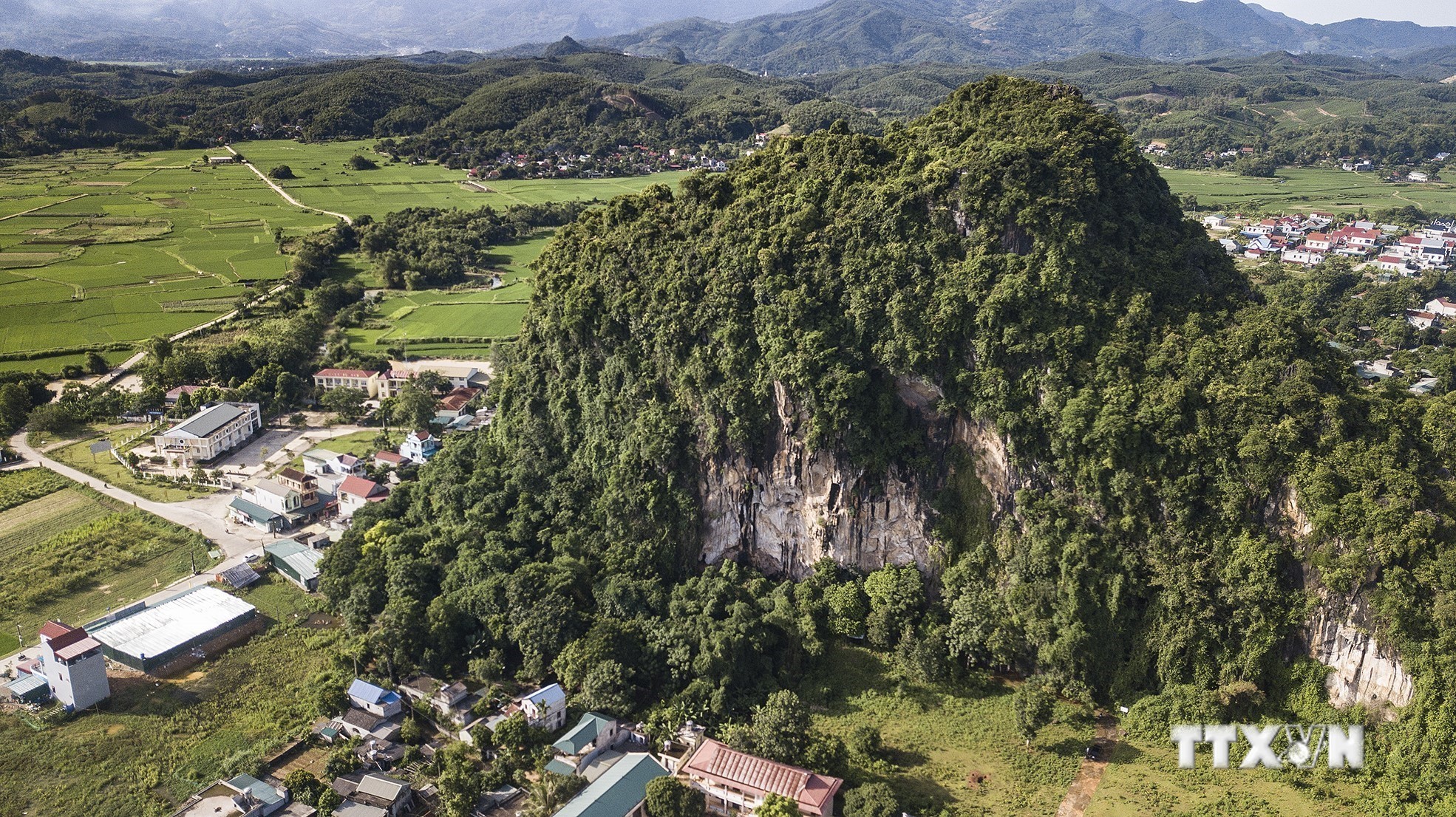 Mái đá làng Vành nằm dưới chân núi Khụ Vành tại xã Yên Phú (Lạc Sơn, Hòa Bình). Ảnh: Trọng Đạt – TTXVN