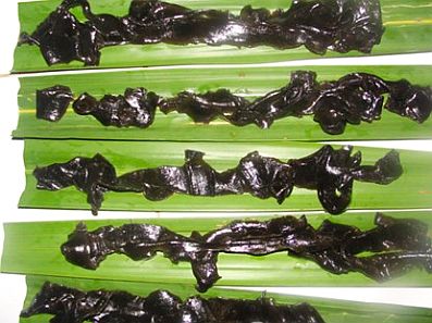 Bánh chín đem ra để âm ấm rồi dùng tay gỡ bánh ra khỏi lá. Sắp những dây bánh có mầu xám đen vào dĩa, chan nước cốt lên, rắc thêm ít đậu phộng rang đâm nhuyễn là đã có được món ăn vừa đậm đà, ngon miệng lại no lòng. Mùi vị riêng của lá thúi địt hoà vào bột, bột lại nắn trên lá dừa nước còn tươi đã tạo thành một thứ bánh đầy quyến rũ miền thôn dã. Nó khiến người đi xa nhớ mãi câu ca dao xưa: “Phảng phất hương vị quê mùa/ Bánh nắn lá chan nước cốt dừa khó quên”./.