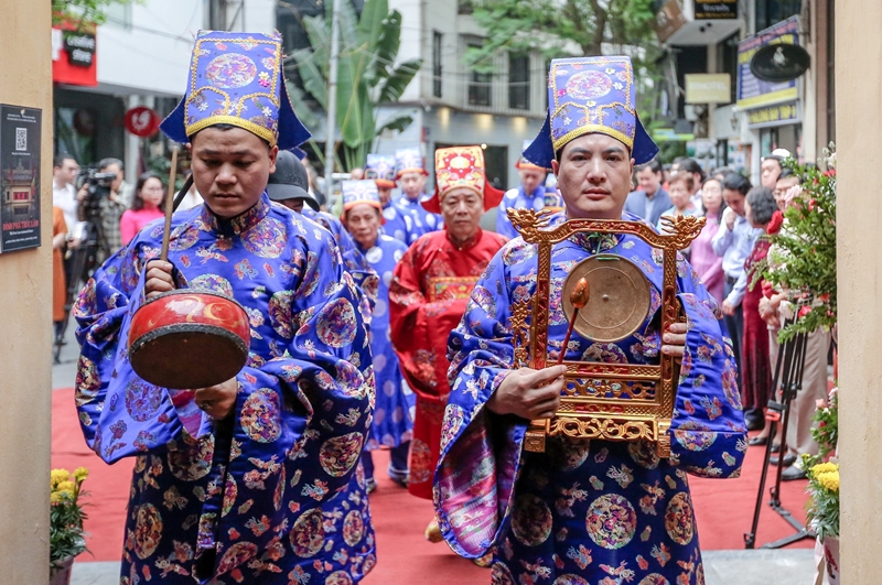 Hoạt động dâng hương tưởng niệm Tổ nghề tại Đình Phả Trúc Lâm, Hàng Hành, Hà Nội (Ảnh: Ngô Trần)