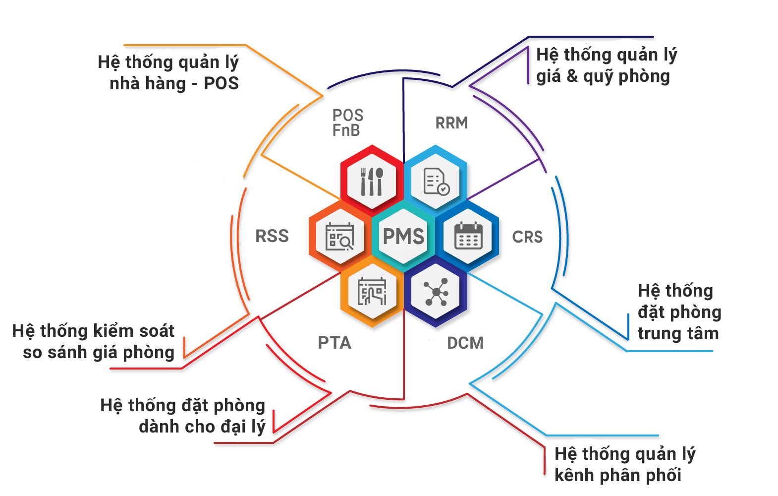 Rõ ràng là bạn có thể sử dụng nhiều phần công nghệ khác nhau tại khách sạn của mình, bao gồm, nhưng không giới hạn ở; hệ thống quản lý tài sản (PMS), hệ thống đặt phòng trung tâm (CRS) và hệ thống quản lý doanh thu (RMS).