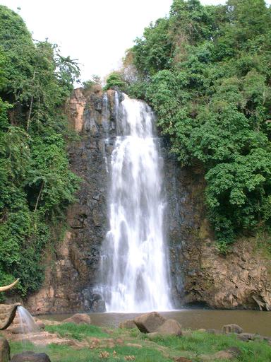 Dưới thác là một cái hồ nhỏ do nước chảy lâu ngày tạo thành, cạnh hồ có những tảng đá lớn trông như những bàn đá của trời và những cây cổ thụ cao to che mát cả một khoảng trời.