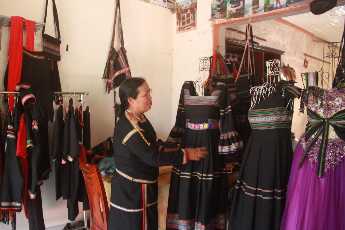Chị H’Tuyết chia sẻ: “Ngày nhỏ, mình được mẹ dạy dệt thổ cẩm, mình rất thích. Nhưng lớn lên, cuộc sống gia đình khó khăn, sản phẩm thổ cẩm cũng chủ yếu để phục vụ gia đình chứ không bán được. Tham gia HTX dệt thổ cẩm Tơng Bông mình đã giao việc nương rẫy cho chồng để tập trung dệt các sản phẩm thổ cẩm. Để đa dạng sản phẩm, mình còn học thêm nghề may, ban ngày thì đứng may, tối đến dệt thổ cẩm. Biết dệt thổ cẩm, biết may, mình vừa có công việc yêu thích, phù hợp với sức khỏe, vừa giữ được nghề truyền thống của dân tộc và có thu nhập ổn định. Cuộc sống của gia đình mình dần ổn định, ngày càng đầy đủ hơn”.