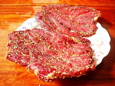 Thịt ướp trong khoảng 30 phút đã đủ độ thấm gia vị, lúc này người ta mang ra đặt từng miếng lên phên tre phơi nắng. Thịt được phơi từ lúc nắng sớm cho tới lúc mặt trời mọc và trong khoảng thời gian phơi nắng một ngày đó, thi thoảng phải có sự lật trở để miếng thịt se khô đều hai mặt. Nắng càng to, nhiệt độ ngoài trời càng cao thì những miếng thịt trâu càng se khô, khi chế biến ăn sẽ càng ngon, ngọt.