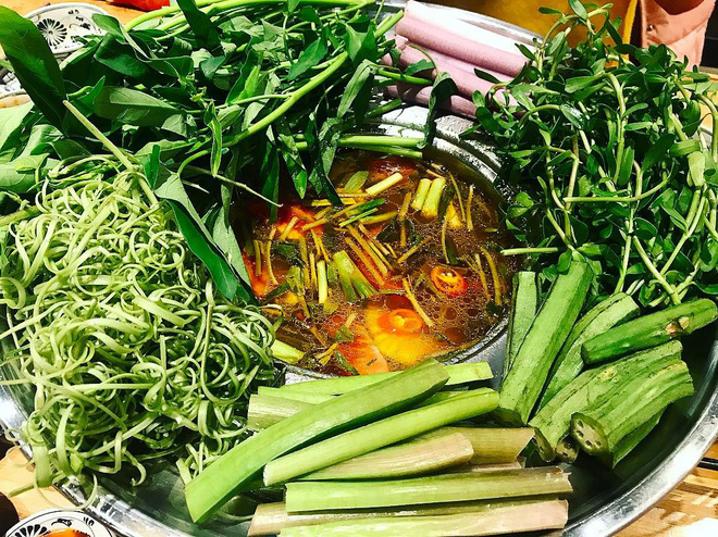 Nếu ăn đúng lẩu mắm ở miền Tây, có khi khay rau lên tới 30 loại, từ phổ biến như rau muống, rau nhút, nấm cho đến những loại rau miền Tây như rau đắng, kèo nèo, bông điên điển. Không chỉ rau đa dạng mà đồ ăn đi kèm món lẩu này cũng phong phú với đủ thịt ba chỉ, cá, lươn…