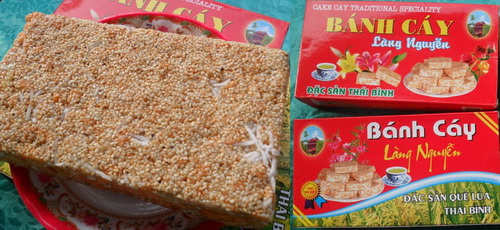Bánh cáy là thức bánh được làm từ đôi bàn tay khéo léo của người dân làng Nguyễn (xã Nguyên Xá, huyện Đông Hưng). Xưa kia, đây là sản vật của người Thái Bình để tiến vua. Nét độc đáo của bánh cáy làng Nguyễn chính là sự kết hợp các nguyên liệu từ hoa màu trong đời sống, tạo nên một thứ bánh dẻo, thơm và có hương vị đặc trưng.