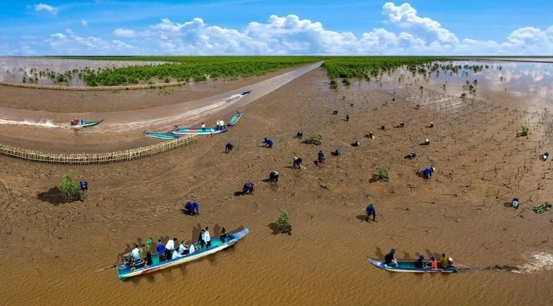 Bãi Bồi ven biển Mũi Cà Mau, một trong những điểm đến lý tưởng, hấp dẫn khách thập phương. (Ảnh: CTV)