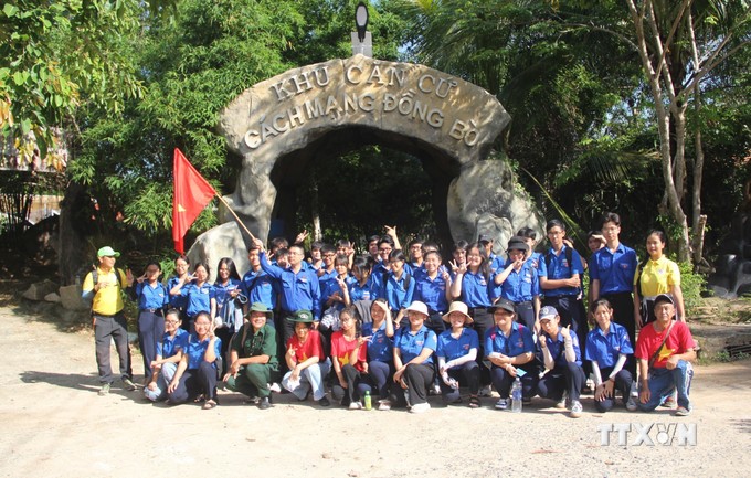 Giao lưu kiến thức về lịch sử Khu căn cứ cách mạng Đồng Bò trong chương trình về nguồn của đoàn viên, thanh niên. Ảnh: Phan Sáu