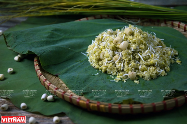 Với sự kết hợp khá bắt mắt giữa những màu sắc thiên nhiên xanh-trắng-vàng của cốm, sen, dừa và đỗ xanh nên xôi cốm không chỉ hấp dẫn vị giác ở vị dẻo thơm ngọt bùi, mà còn kích thích cả thị giác của người thưởng thức./.