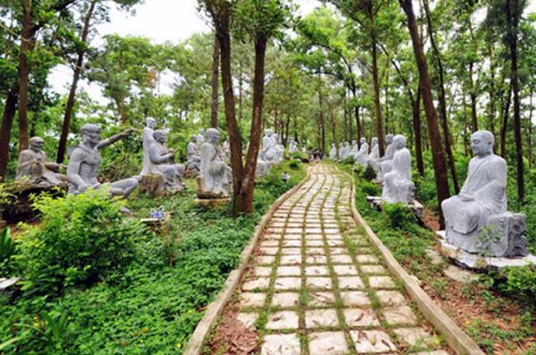 Điểm ấn tượng đối với du khách khi đến đây tham quan là được thưởng lãm và tận hưởng những phút giây thanh tịnh, thư giãn giữa khu vườn tượng La Hán độc đáo trong khuôn viên của chùa. Đi qua những bậc thang từ cổng chùa dưới chân núi, con đường nhỏ mềm mại uốn lượn giữa vườn tượng đưa du khách như lạc vào cõi bồng lai tiên cảnh. Các pho tượng La Hán trong vườn đều được tạc bằng đá xanh nguyên khối có chiều cao 1,6 – 1,8m như người thật. Các vị La Hán với biểu hiện sinh động  làm lên sự đặc biệt của vườn tượng. Đây là những pho tượng La Hán, do người Việt sáng tạo./.
