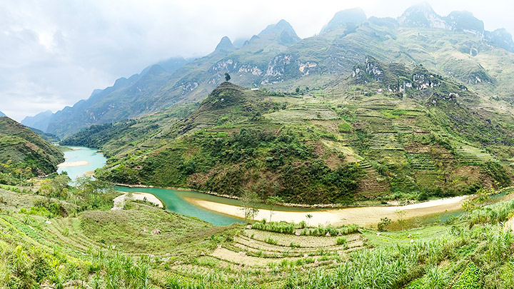 Nhưng rồi những con đường bê-tông ở các thôn, bản được xây dựng, người ta bắt đầu nghĩ tới việc làm du lịch. Nổi tiếng nhất, là bến thuyền từ bản Tà Làng, bởi nó đi qua con dốc 49 khúc cua với khung cảnh có thể xem như là “trác tuyệt”. Người Tà Làng vốn dĩ trước kia ở cao hơn, nhưng những công trình thủy điện làm thay đổi cuộc sống của họ, biến họ thành cư dân sát bờ sông. Người ta bắt đầu sắm thuyền, rồi làm xe ôm cho khách du lịch. Tôi gặp Tuấn ở Tà Làng năm 2017, năm đầu tiên Tà Làng thử đón khách, Tuấn bảo chở khách thế này cũng đỡ hơn phải sang Trung Quốc làm thuê. Năm 2018-2020, có những đợt cao điểm, cả bản 30 trai làng đều được huy động làm xe ôm chở khách từ đường Hạnh Phúc, vượt hơn 7 cây số ngoằn ngoèo xuống thuyền. Con đường ấy đẹp thì đẹp, nhưng không dành cho người yếu tim. Đầu năm vừa rồi, UBND huyện Mèo Vạc thông báo bến thuyền bị ngừng hoạt động, với lý do không bảo đảm an toàn. Hỏi Tuấn là giờ làm gì, cậu nhún vai bảo chưa biết, có lẽ sẽ đi làm thuê đâu đó, chờ xem bao giờ Tà Làng lại được đón khách. Bây giờ, người ta xuống sông chơi theo con đường từ Nhà máy thủy điện Nho Quế 1 và thôn Hấu Chua.