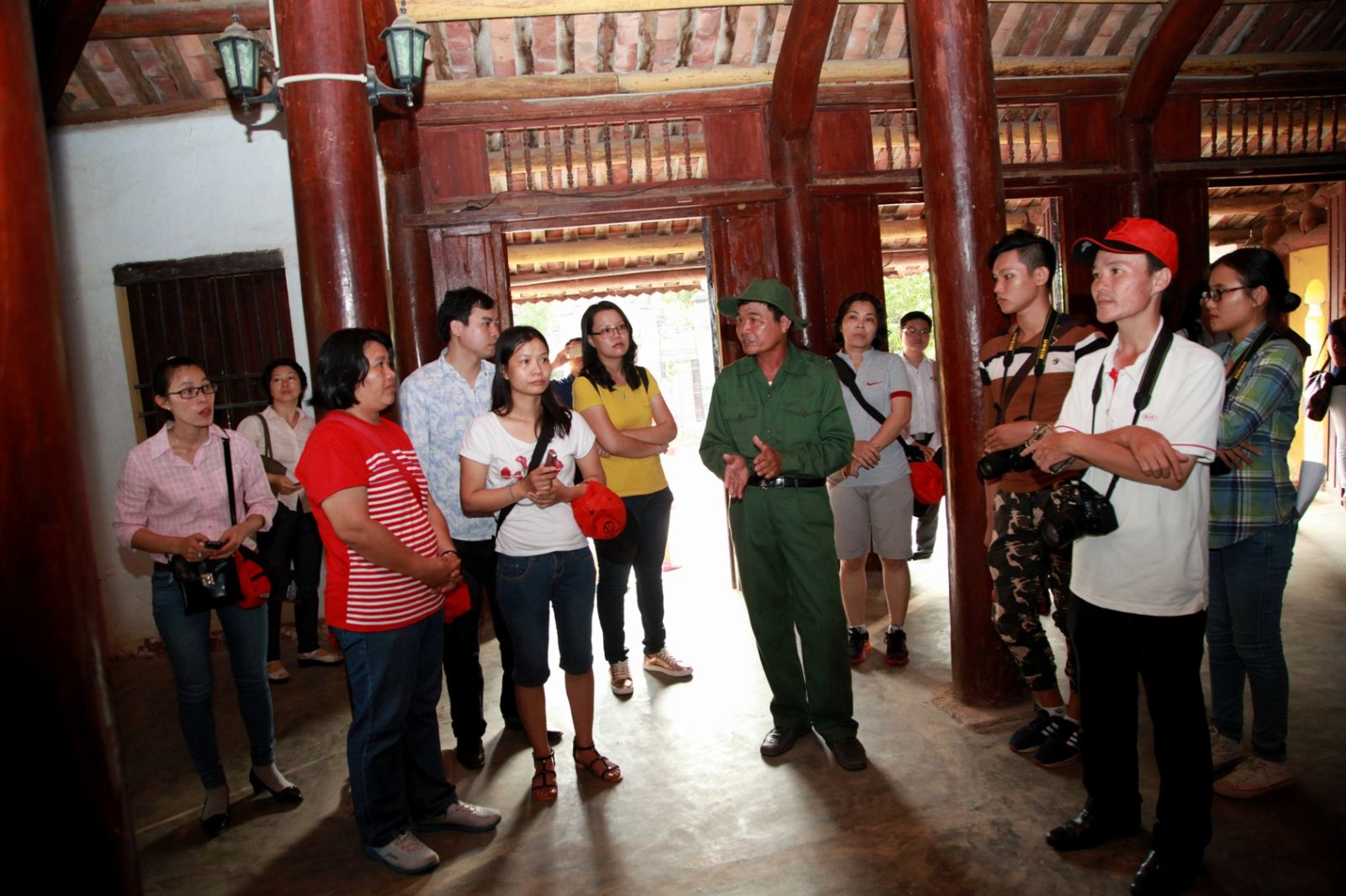 Du khách nghe giới thiệu về đình Thạch Tân, nơi xuất phát của địa đạo Kỳ Anh