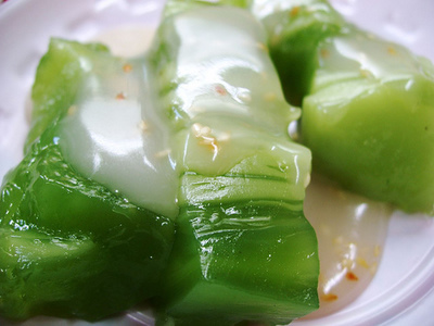 Cũng là bột gạo quấy nhưng người miền Tây lại thêm chút nước cốt lá dứa cho màu bánh xanh lại có mùi thơm thoang thoảng. Có những người phụ nữ khéo tay lại thích đổ bánh theo màu cẩm thạch nhìn vừa đẹp lại vừa ngon. <!—->