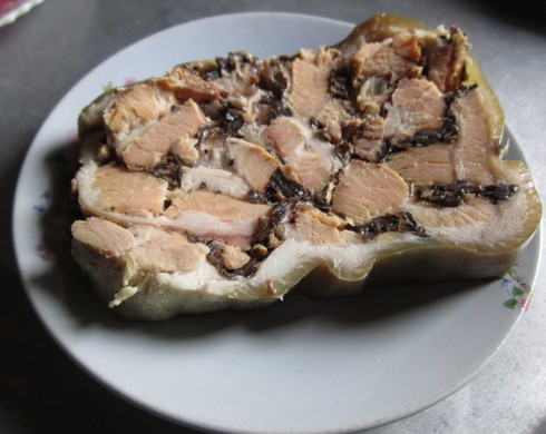 Giò lây ăn ngon nhất là với dưa hành muối chua ngày tết. Giò thơm mùi thịt, hạt tiêu, đậm đà và giòn giòn mộc nhĩ. Đây mà món ăn lạ miệng và rất thú vị. Ai đã từng một lần thưởng thức món giò này sẽ không thể nào quên hương vị độc đáo, hấp dẫn của nó./.
