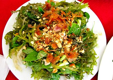 Chủ hàng ăn trên đảo đặt giữa mâm cơm đặc sản nào sò, nào mực, nào cá… một dĩa gỏi xanh mướt mát, hào hứng giới thiệu với thực khách: “nhất đảo đấy!”. Dĩa gỏi mới nhìn đã bắt mắt. Những cọng rong biển thân tròn, rẻ nhánh như những cành san hô, xanh trong trộn lẫn giữa những cọng rau húng quế. Bên trên, chủ quán rắc khéo những hạt đậu phộng và ít hành phi dậy mùi kích thích khứu giác.<!—->