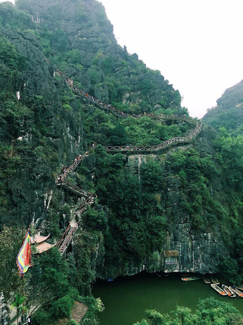 Dù mở cửa đón khách từ lâu, gần đây những hình ảnh về Tràng An được nhiều bạn trẻ mê khám phá chia sẻ rộng rãi và hỏi tìm đường đến. Một trong những điểm hấp dẫn nhất ở đây là con đường quanh co lên núi.<!—->