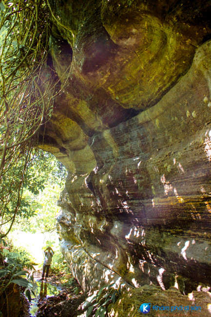 Xuống dưới đáy vực, di chuyển vào sâu khỏang 50m qua những khối đá to, hang thấp đã hiện ra sừng sững trước ngay phía trước mặt bạn.