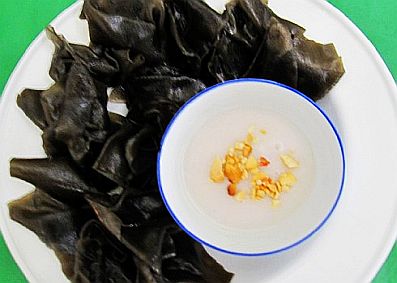 Cho bánh vào đĩa chan ngập nước cốt dừa lên, và dùng đũa gắp từng miếng bánh cùng nước cốt dừa cho vào miệng nhai từ từ. Vị béo, ngọt của nước cốt dừa, vị dai dai của bánh và mùi thơm đặc trưng khó quên của rau mơ như kích thích mọi giác quan…